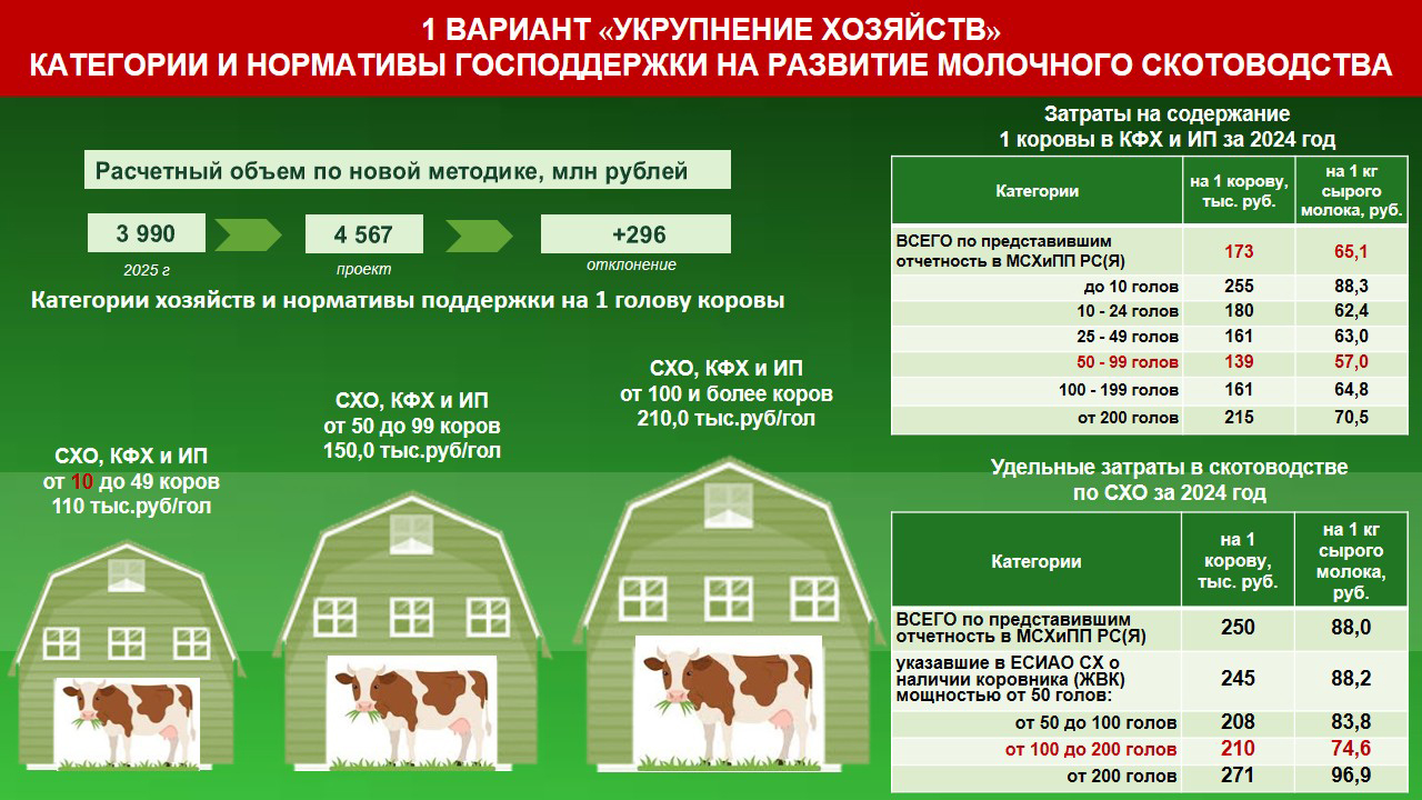 Министр сельского хозяйства также сообщил, что при предварительном обсуждении нового механизма в центральных, заречных и вилюйской группе улусов сельхозпроизводители более приемлемым считают второй вариант: